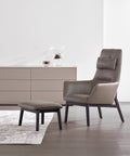 Como una pieza de origami, la silla Qing (respaldo alto) con patas de madera, parece como si una sola pieza de papel estuviera doblada en los brazos, el respaldo y el reposacabezas para brindar comodidad además de diseño. Rellenas con espuma de poliuretano moldeada integralmente, las líneas nítidas de la silla Qing (respaldo bajo) se suavizan brindando un soporte flexible al respaldo y al asiento. Ya sea sobre un marco de madera de roble gris o sobre una base giratoria de níquel negro, la serie Qing se puede fabricar en tela, cuero o una combinación de ambos; las opciones son infinitas.