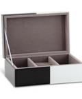 Diseñadas para combinar funcionalidad y elegancia, estas cajas de joyería destacan por su estructura recubierta con mosaicos de vidrio que reflejan la luz de manera sutil y sofisticada. Cada pieza está cuidadosamente trabajada para ofrecer un acabado brillante y atemporal que eleva cualquier espacio.