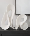 Un dúo de formas elegantes y atemporales que aportan sofisticación a cualquier espacio. Estas esculturas presentan líneas suaves, curvas estilizadas y secciones huecas, logrando un diseño contemporáneo y dinámico.