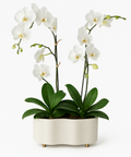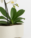 Una forma inesperada y encantadora crea una pieza llamativa con múltiples propósitos. El macetero de gran tamaño está diseñado para contener de 3 a 4 macetas estándar de 6" de alto, lo que lo convierte en el lugar perfecto para exhibir orquídeas u otras plantas favoritas. Elaborado con piedra sintética color marfil que reproduce con gran precisión la apariencia del mármol Thassos.