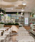 Es la teoría del equilibrio moderno. Una estética que mezcla lo cálido y minimalista con lo funky y espontáneo. Inspirado en la suavidad de lo artesanal, el lujo relajado de Loewe, la vibra effortless de Erewhon y el café sin prisas de Chamberlain Coffee. Desde el momento en que cruzas la puerta, Blend Theory te recibe con una sensación de armonía entre contrastes. No es un lugar que elige entre lo dulce o salado, snacks o comida balanceada, rápida o slow, sino que celebra cómo todo puede coexistir en el mismo espacio sin perder la esencia. HALF & HALF es la fusión perfecta entre contrastes que, en lugar de oponerse, se complementan.