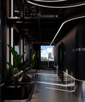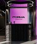 En FORMA Fitness House diseñamos un estudio que late: un high-performance studio donde la arquitectura orquesta energía, foco y emoción. Bajo el teorema del éter, concebimos el cuerpo como materia en tránsito y el espacio como campo de transformación; por eso todo fluye en curvas que abrazan, conectan y conducen, mientras la luz —protagonista— marca el ritmo con luminarias circulares y una pieza custom en el pasillo que une cada área como un pulso continuo. El programa vive en dos zonas clave: Área Activa (lectura limpia de estaciones, señalética mínima, operación precisa) y Área Recovery (bajar pulsaciones, resetear percepción). La paleta negro + morado con acentos metálicos satinados firma una estética sobria y escultórica; materiales de alto desempeño y acústica calibrada aseguran una experiencia limpia, legible y potente. Todo está donde lo necesitas: áreas húmedas en baño, zonas de convivencia y rincones instagram-ready con elementos deliberadamente creativos. Entrar es bajar la velocidad para afinar la percepción; entrenar es activar la fórmula —intensidad + repetición + intención—; salir es llevarte una versión ampliada de ti. En BYMURA lo decimos claro: aquí no entrenas para cambiar, entrenas para evolucionar.