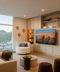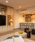 El lenguaje del diseño parte de una base neutra: muros suaves que amplifican la luz y una paleta dominada por madera de encino natural, seleccionada por su durabilidad y tono acogedor. El uso de rattán en detalles clave aporta textura y una sensación orgánica que conecta con lo artesanal y refuerzan la conexión con lo orgánico, lo texturizado, lo humano.. Los acentos en textiles cálidos, arte abstracto y mobiliario curado enriquecen visualmente cada rincón, sin perder la funcionalidad.